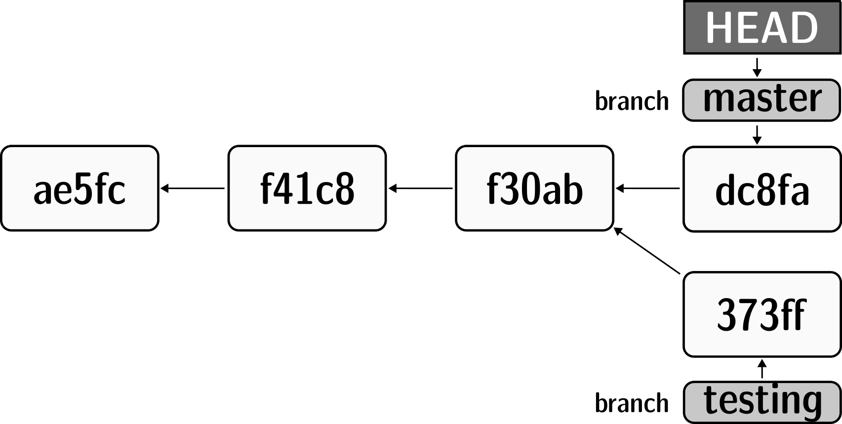 few abbreviated hashes of the 15 most recent commits[2]: